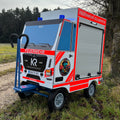 • Kinderfeuerwehrfahrzeug in zwei Standardversionen, fertig montiert und einsatzbereit